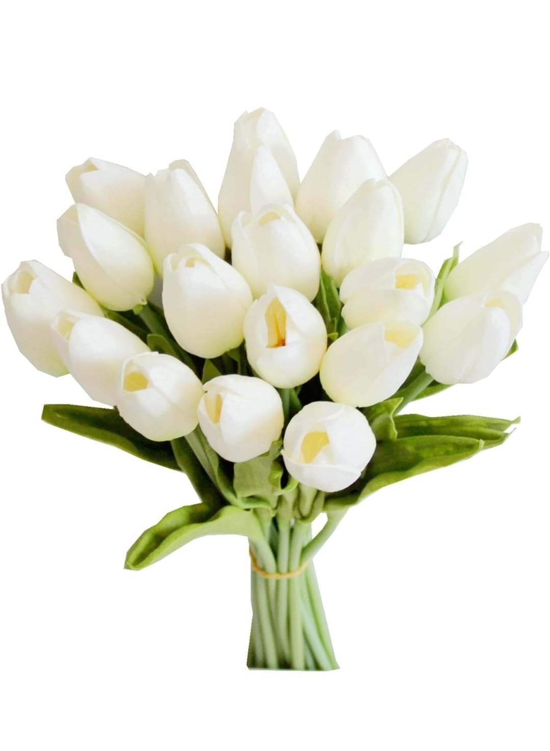 Elegant and timeless, these lifelike faux white tulips symbolize peace, purity, and calm. Carefully arranged with natural green stems and soft leaves, they bring a clean, refreshing touch to any space. Perfect for creating a serene atmosphere or giving a gentle, heartfelt gift, no maintenance, just everlasting beauty.
